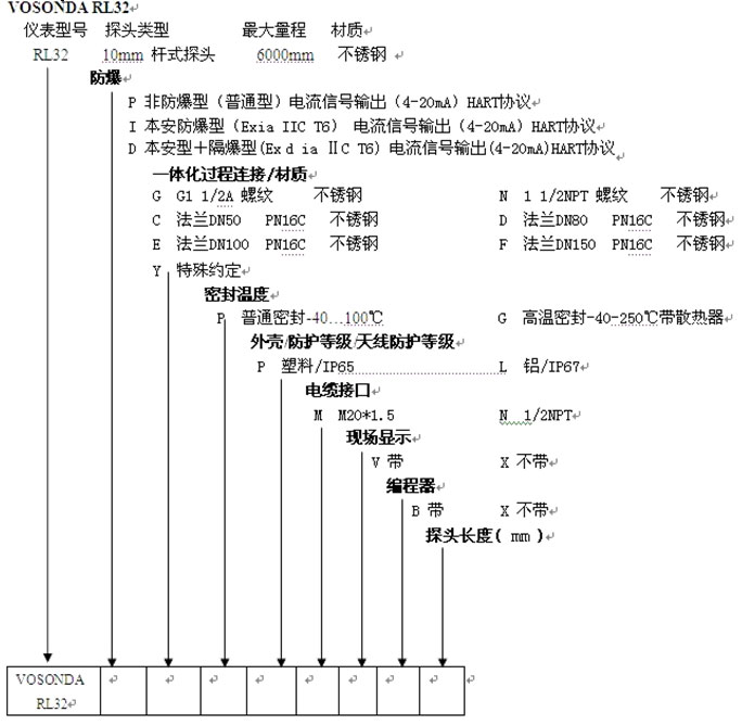 导波雷达物位计RL32选型: