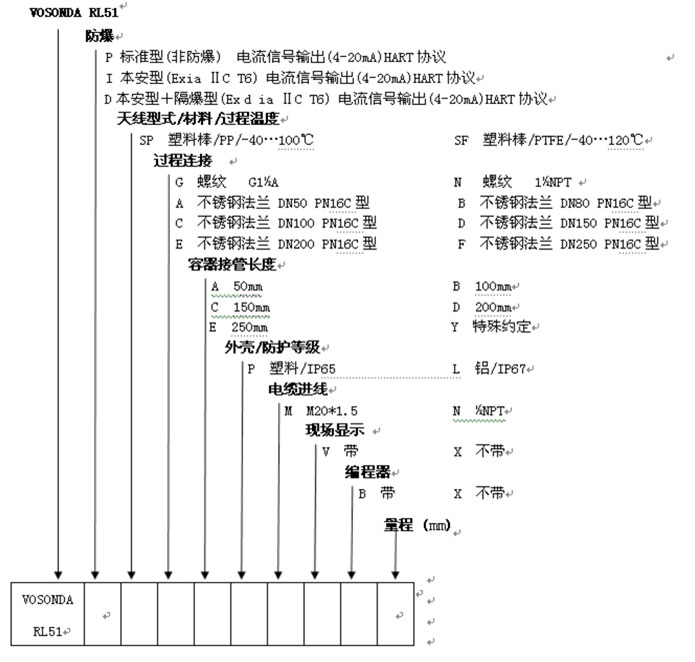 导波雷达物位计RL51选型:
