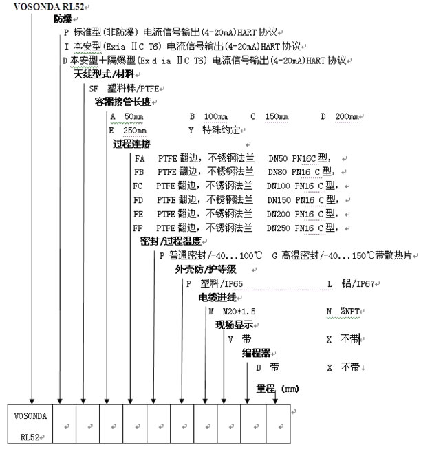 导波雷达物位计RL52选型: